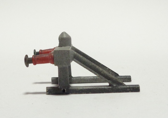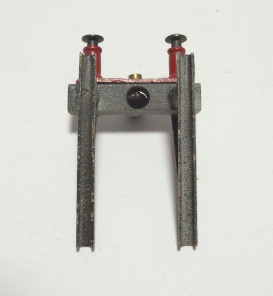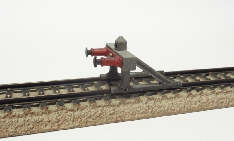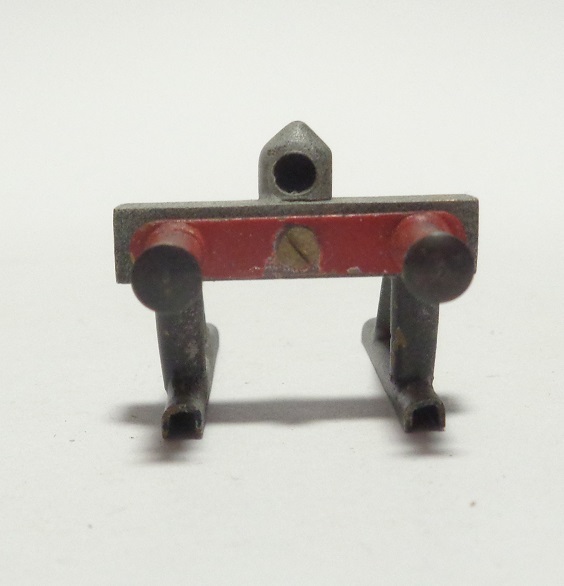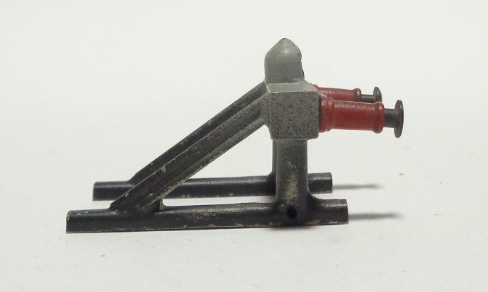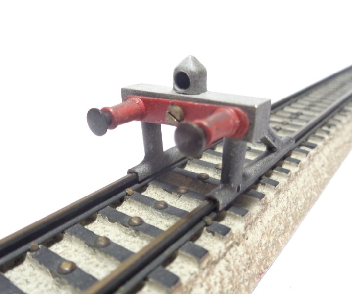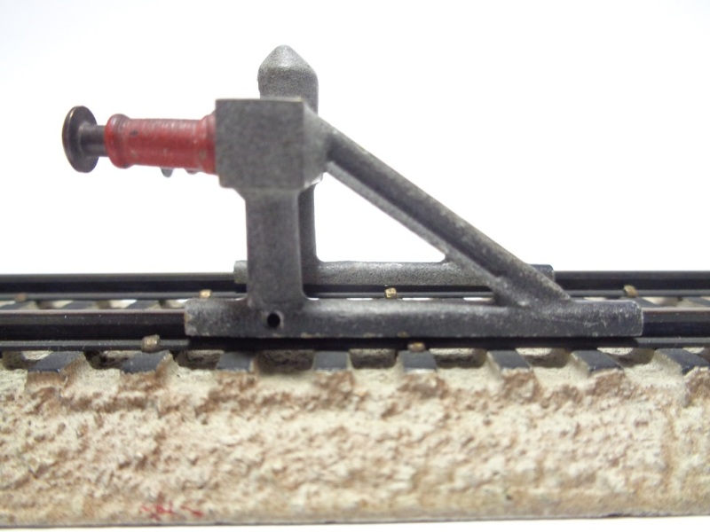 Heurtoir tout métal, se fixant sur les voies par 4 petites vis, sur le côté extérieur de chaque rail. Il est pour le moment impossible de savoir si il y a eu une version en 2 rails