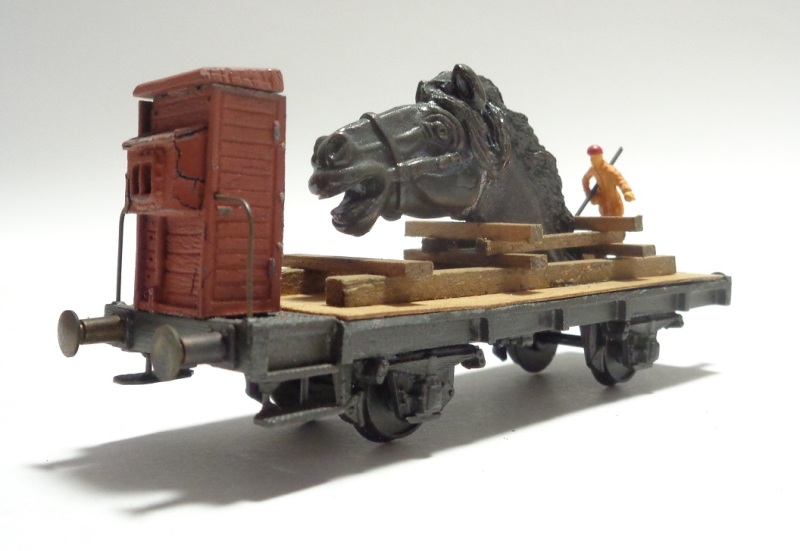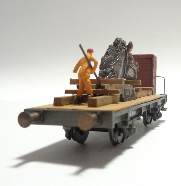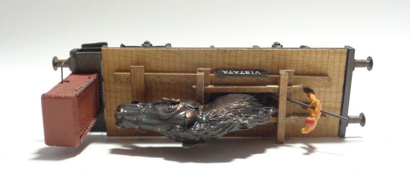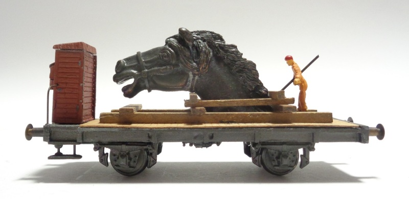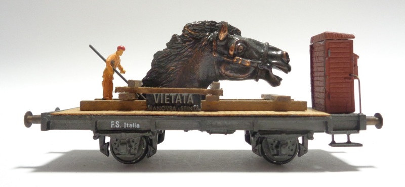 2 versions de châssis différentes : ajouré, ou moulé d’une pièce, avec guéritte de frein, marquage : F.S. Italia Chargement : Tête de ch en bronze sur support en bois et personnage Plaquette : VIETATA – MANOVRA A SPINTA Année : (1985)